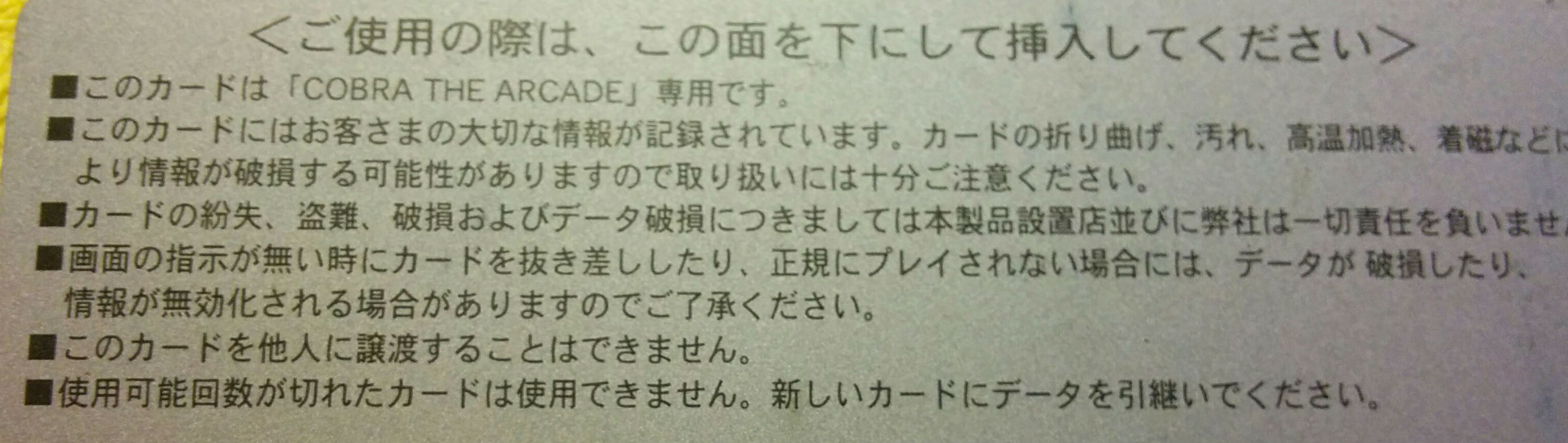 お問い合わせの件ですが、「コブラ・ザ・アーケード」では、専用のカード「サイコガンカード」無しでは、一部のステージのみがプレイが可能となっております。